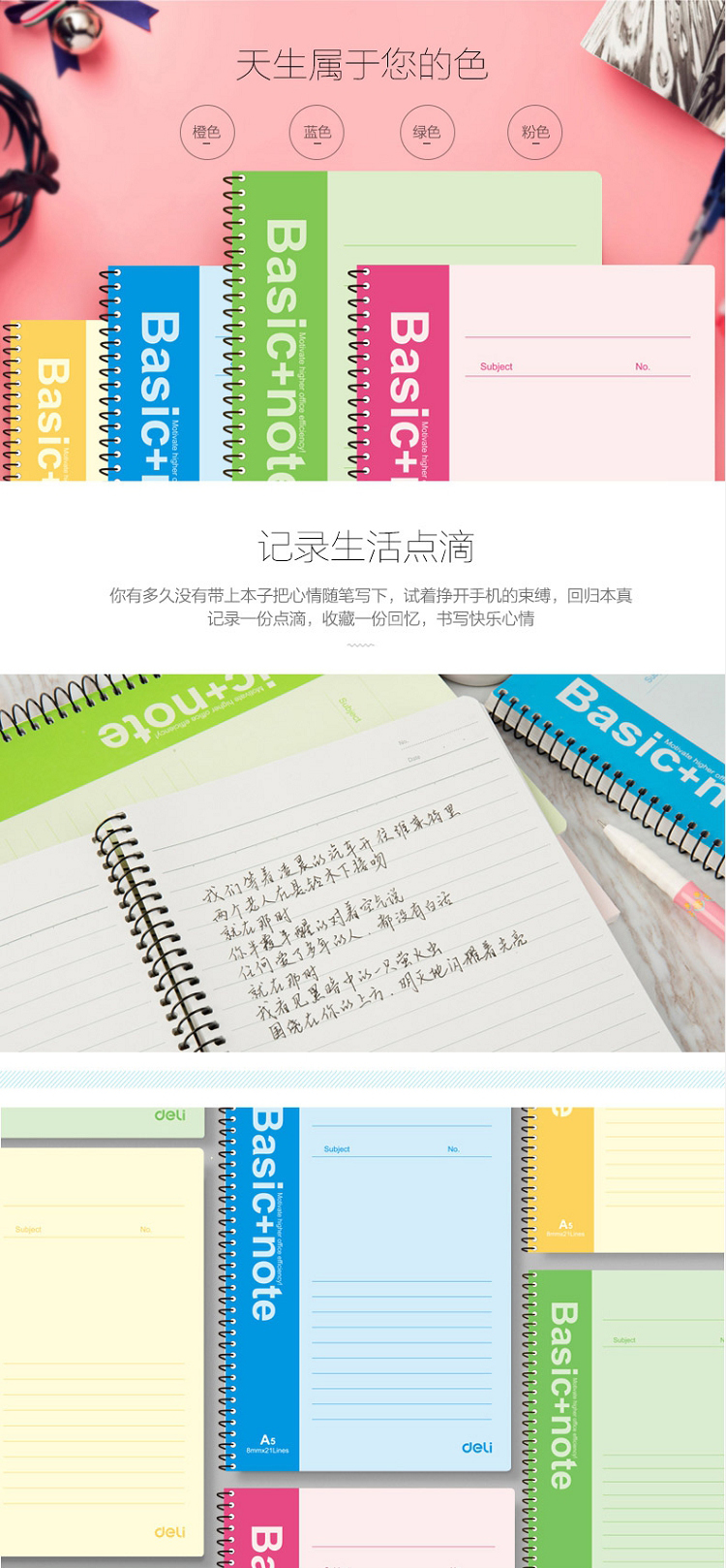 得力(deli) 7693 螺旋裝訂本 記事本 B5/60頁 6本裝