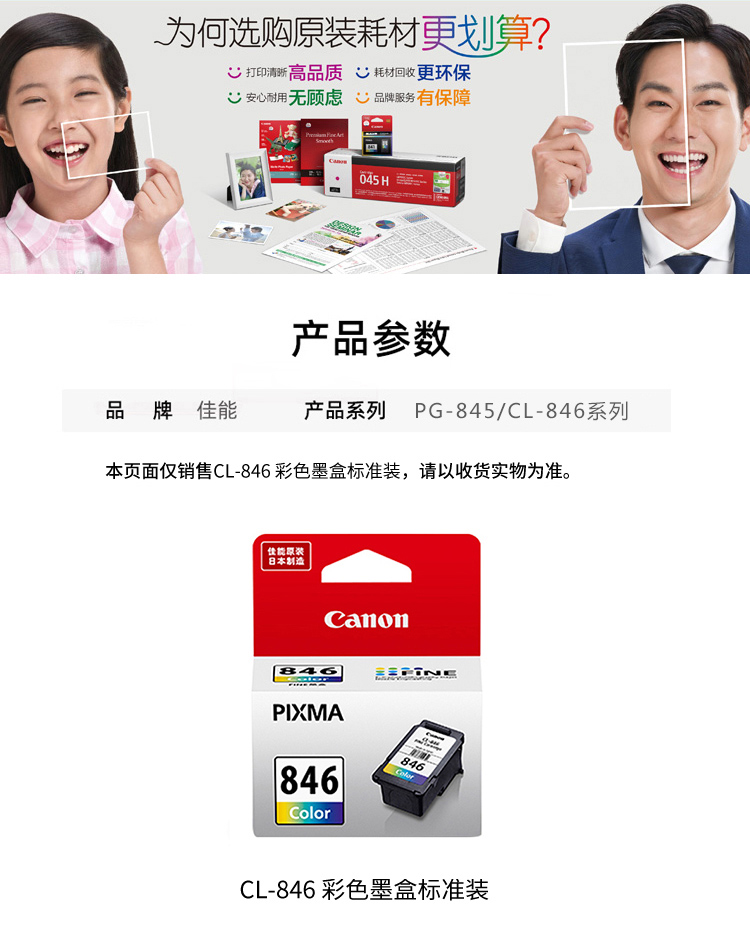 佳能(Canon) CL-846 彩色打印機墨盒/標準容量(彩色)
