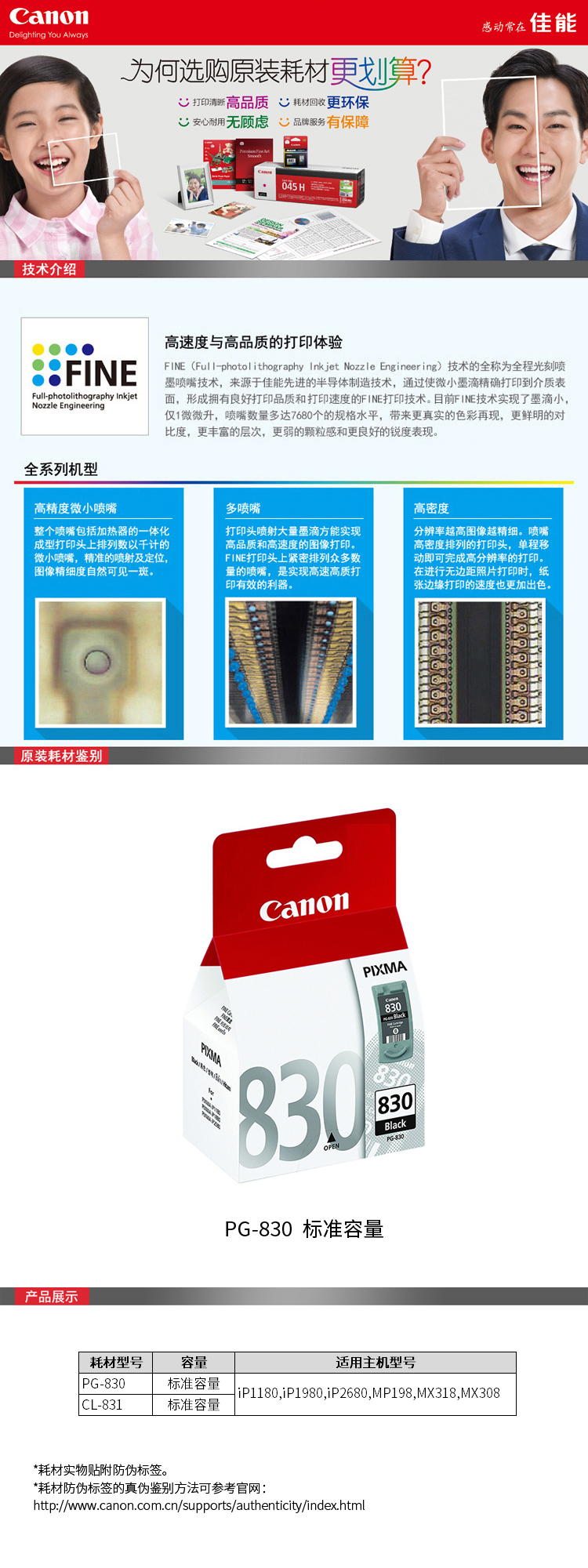 佳能(Canon) PG-830 彩色打印機(jī)墨盒(黑色標(biāo)準(zhǔn)容量)