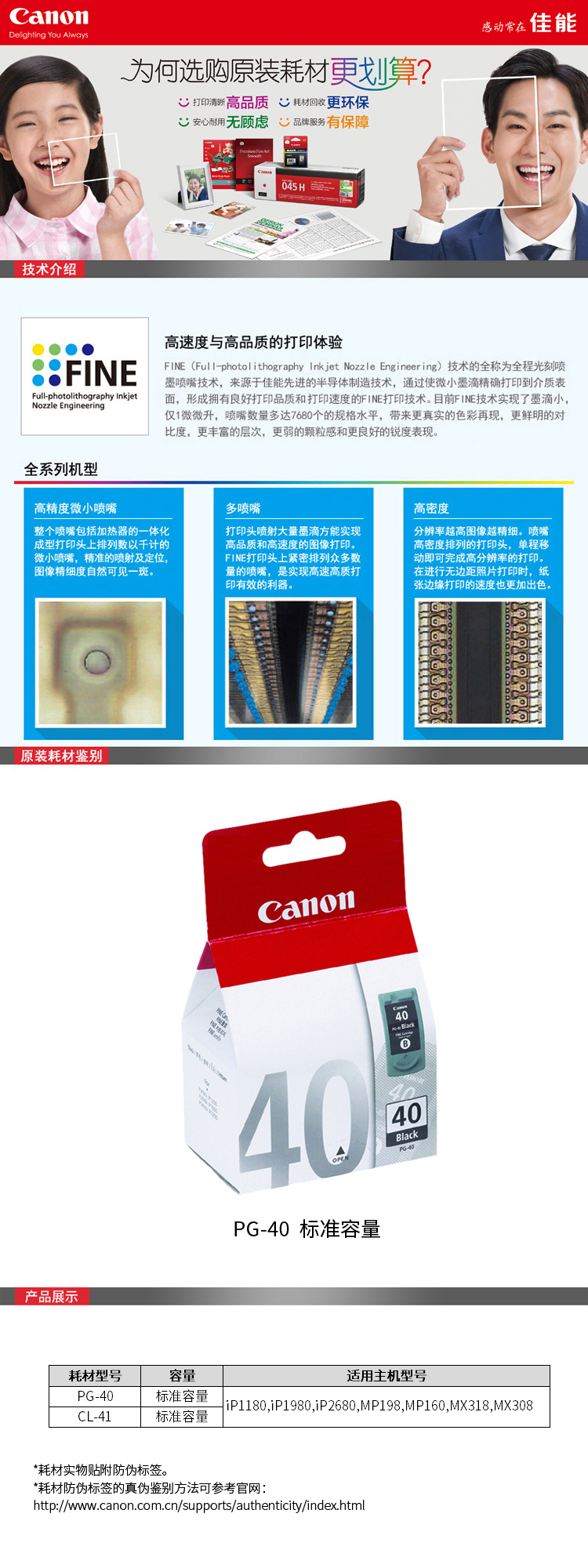 佳能(Canon) PG-40 彩色打印機(jī)墨盒(黑色高容)