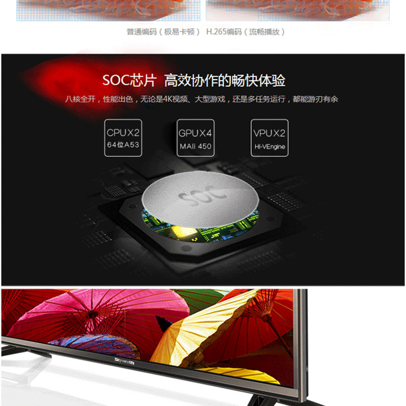 創(chuàng)維(Skyworth) 43E600E 10核超薄窄邊4K超高清液晶電視機(jī) 43英寸/金灰色(座裝)