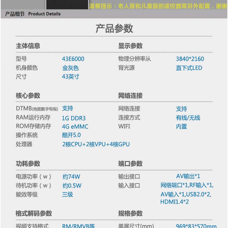 創(chuàng)維(Skyworth) 43E600E 10核超薄窄邊4K超高清液晶電視機(jī) 43英寸/金灰色(吊裝)