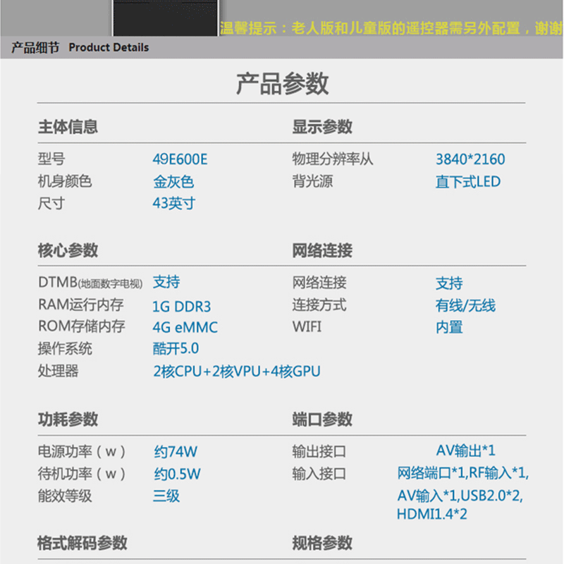 創(chuàng)維(Skyworth) 49E600E 10核超薄窄邊4K超高清液晶電視機 49英寸/金灰色(座裝)