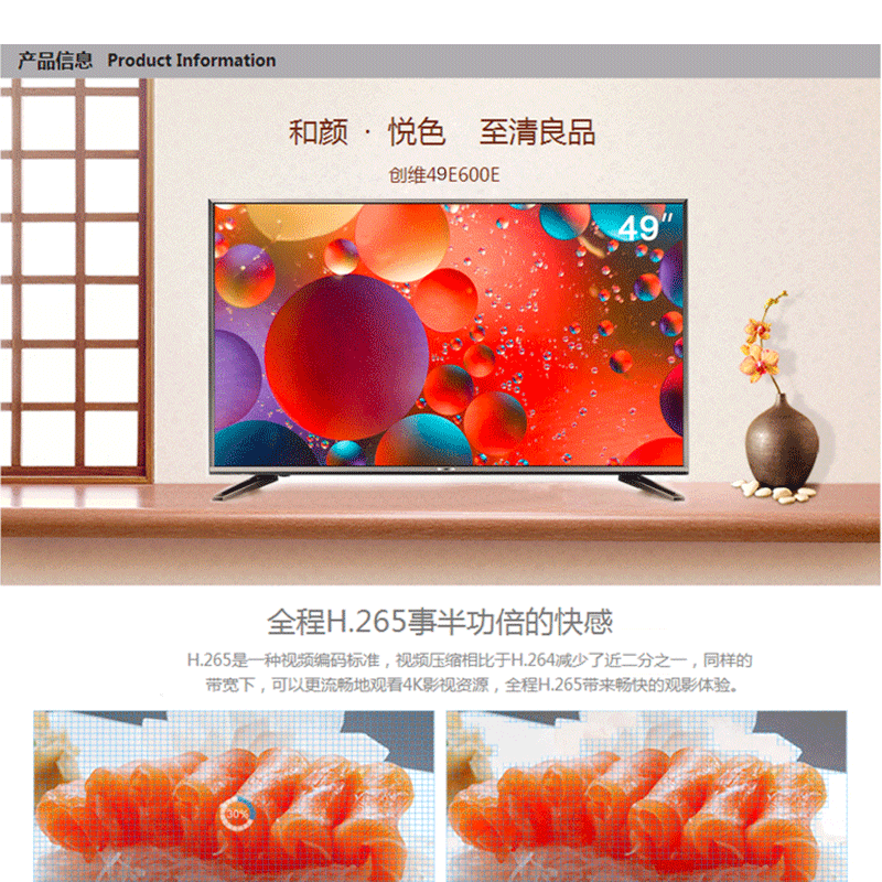 創(chuàng)維(Skyworth) 49E600E 10核超薄窄邊4K超高清液晶電視機(jī) 49英寸/金灰色(吊裝)
