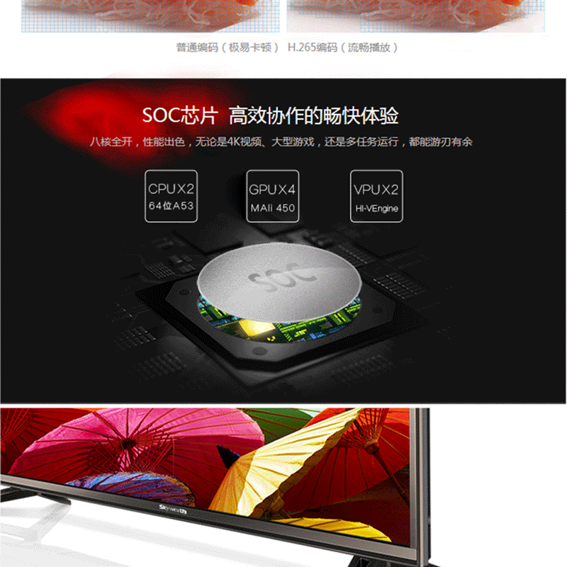 創(chuàng)維(Skyworth) 55E600E 10核超薄窄邊4K超高清液晶電視機 55英寸/金灰色(吊裝)
