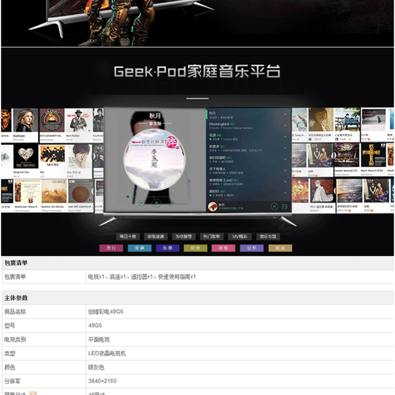 創(chuàng)維(Skyworth) 75G6 4K超高清12核智能網(wǎng)絡(luò)液晶電視 75英寸/銀灰色(座裝)