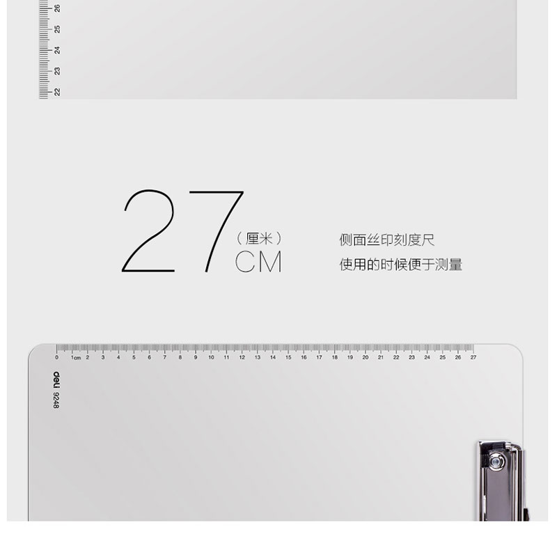 得力(deli) 9248 帶刻度塑料平夾書寫板夾 適用于A4紙