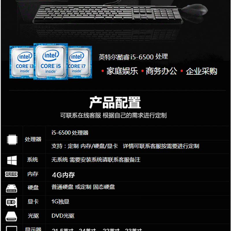 • i5-6500/4G/1T/21.5英寸/1G獨顯 i5-6500/4G/1T/24英寸/1G獨顯 i5-6500/4G/1T/22英寸/1G獨顯 i5-6500/4G/1T/23英寸/1G獨顯 i5-6500/4G/1T/21.5英寸/2G獨顯 i5-6500/4G/1T/24英寸/2G獨顯 i5-6500/4G/1T/22英寸/2G獨顯 i5-6500/4G/1T/23英寸/2G獨顯
