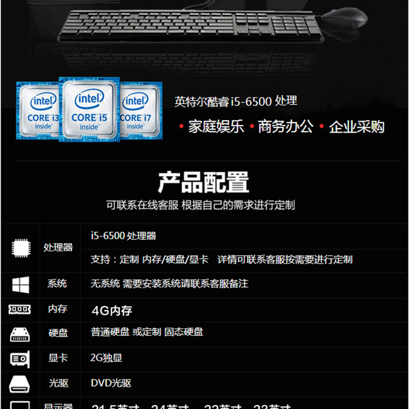 • i5-6500/4G/1T/21.5英寸/1G獨(dú)顯 i5-6500/4G/1T/24英寸/1G獨(dú)顯 i5-6500/4G/1T/22英寸/1G獨(dú)顯 i5-6500/4G/1T/23英寸/1G獨(dú)顯 i5-6500/4G/1T/21.5英寸/2G獨(dú)顯 i5-6500/4G/1T/24英寸/2G獨(dú)顯 i5-6500/4G/1T/22英寸/2G獨(dú)顯 i5-6500/4G/1T/23英寸/2G獨(dú)顯