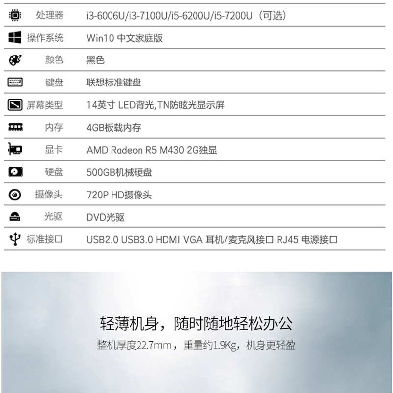 • i3-7100/14.0英寸/2G/500G i5-6200/14.0英寸/4G/500G i5-7200/14.0英寸/4G/500G i5-7200/14.0英寸/4G/1T i7-7500/14.0英寸/8G/1T/360G固態(tài)