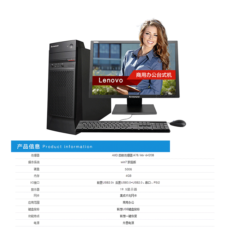 聯(lián)想(Lenovo) M5900-B405 臺(tái)式電腦(A6-6420B 4GB 500GB)