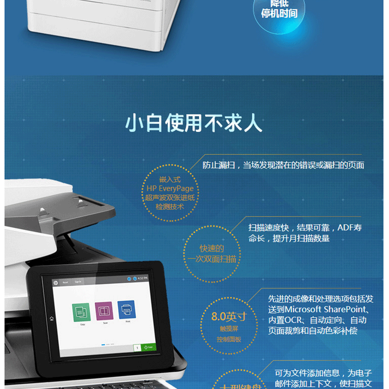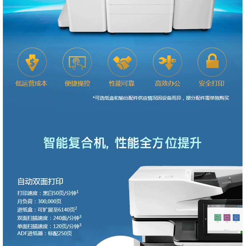 惠普新品!超低運營成本!打印速度:50頁/分鐘,ADF容量:250頁 ?