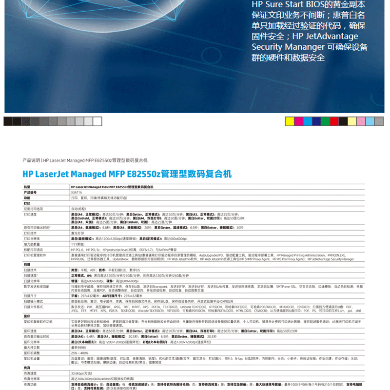 惠普(HP) LaserJet Managed Flow MFP E82550z A3幅面管理型數(shù)碼 黑白激光多功能一體機(打印/復(fù)印/掃描)