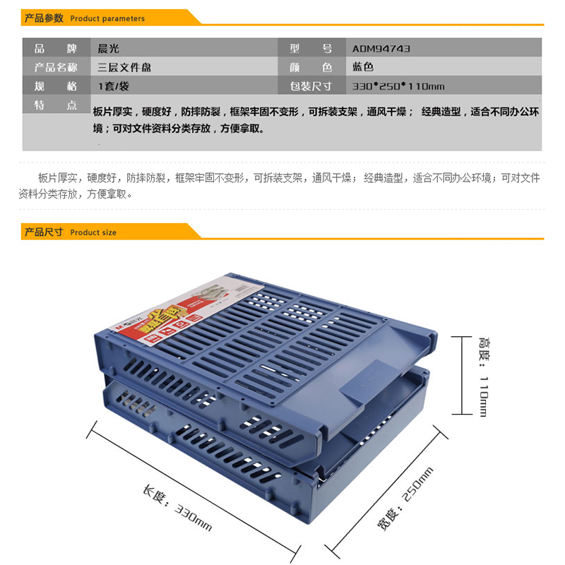 晨光(M&G) ADM94743 三層文件盤文件欄文件架文件座(藍(lán)色)
