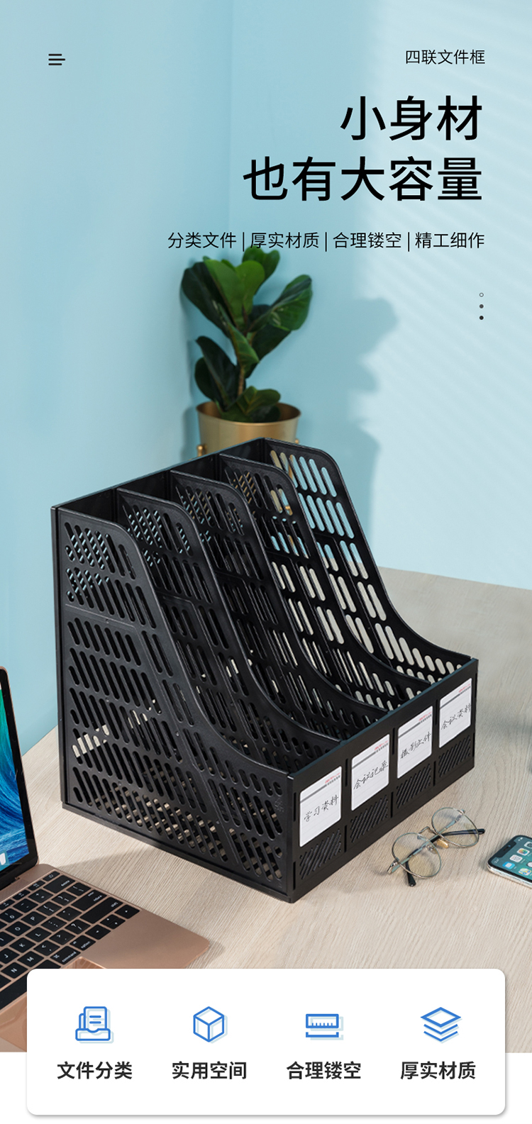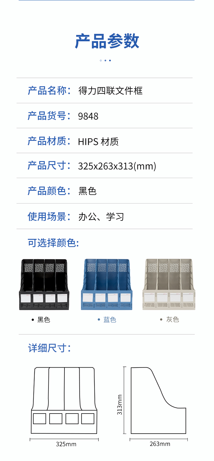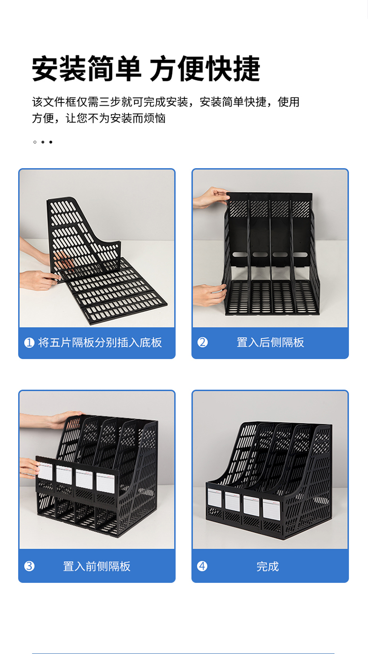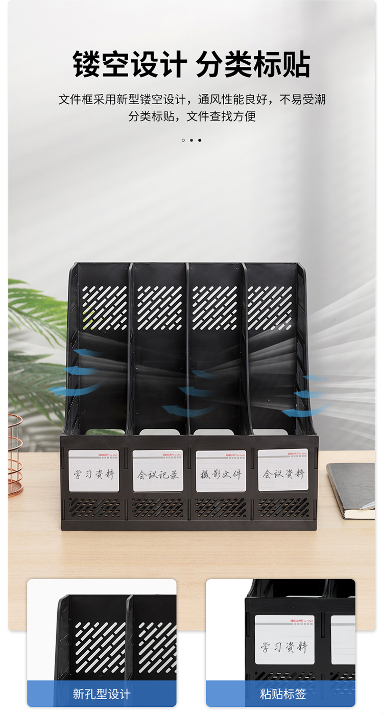 得力(deli) 9848 經(jīng)濟型四聯(lián)文件框文件欄文件筐(黑色)