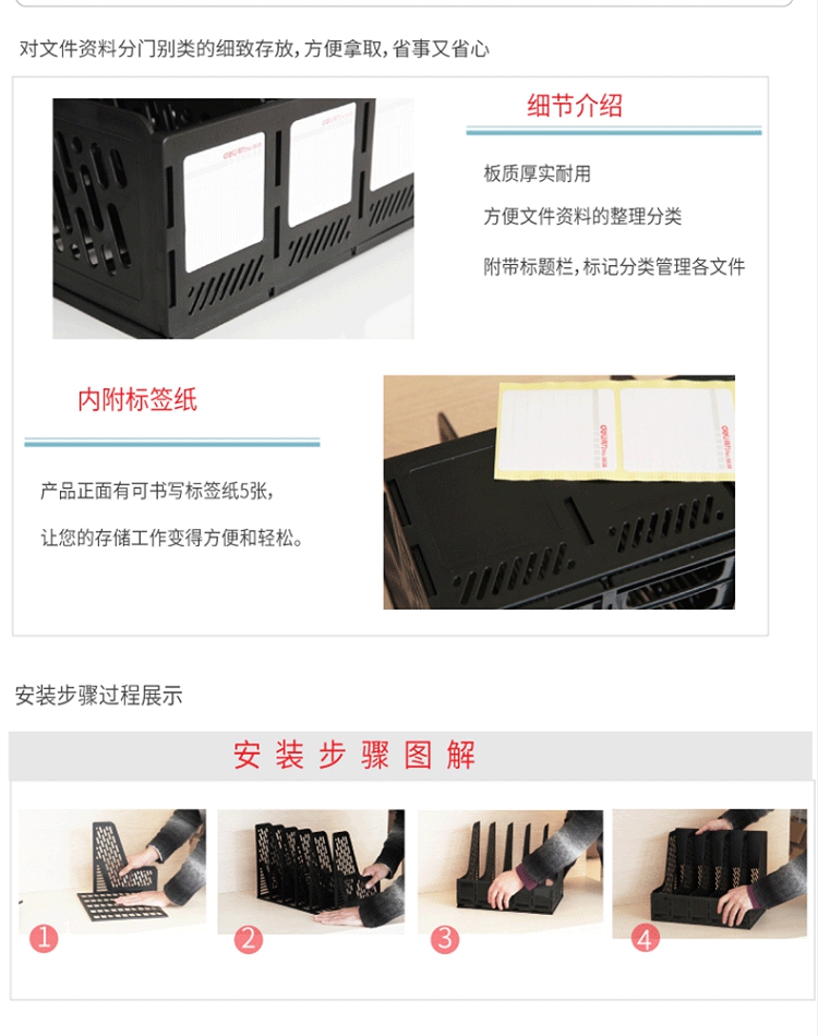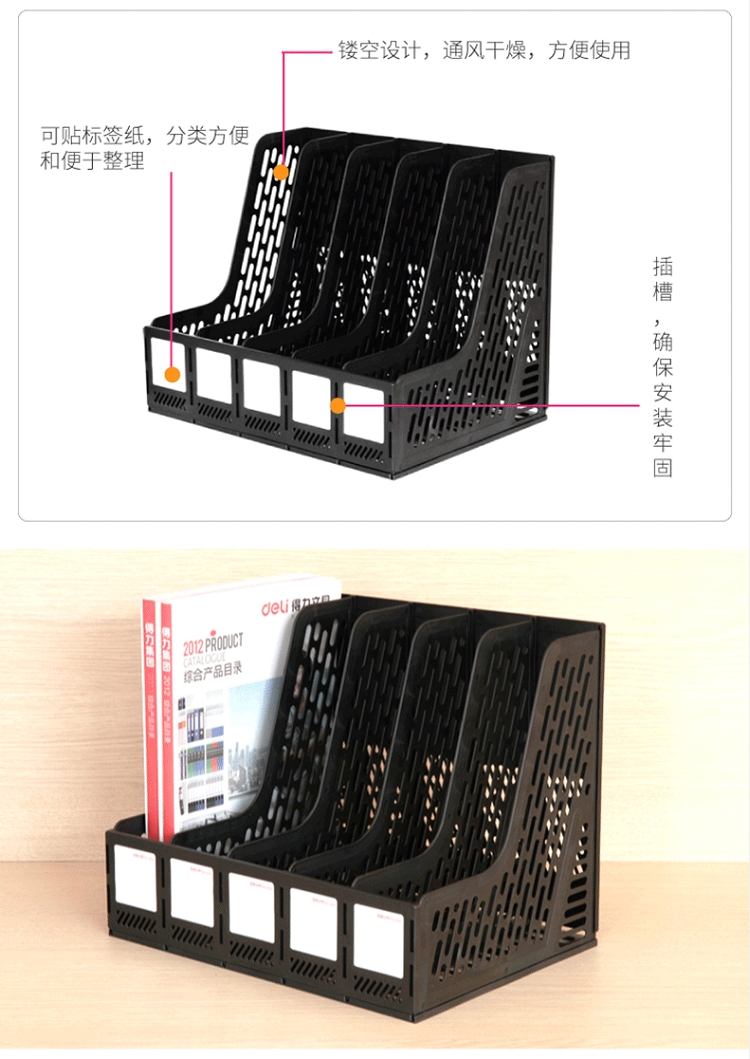 得力(deli) 9835 五聯(lián)文件欄文件框資料架(黑色)