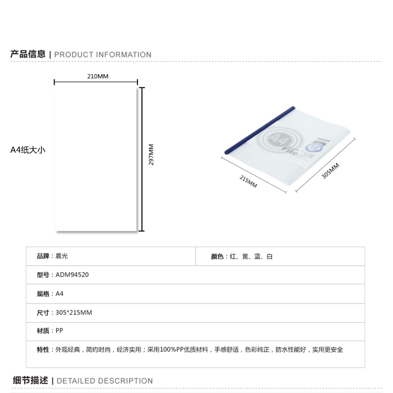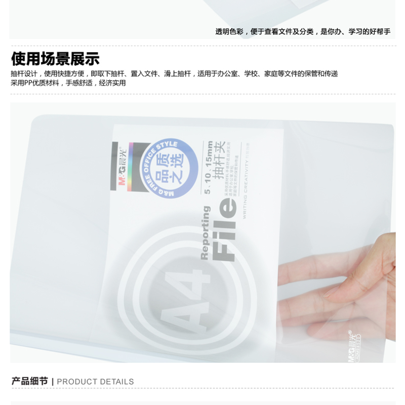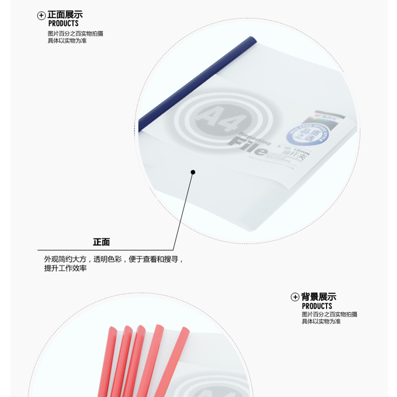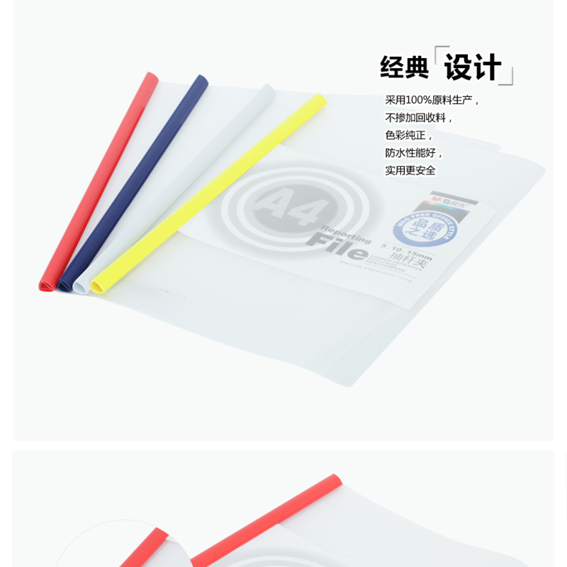 晨光(M&G) ADM94520 A4透明抽桿夾文件夾報(bào)告資料夾拉桿夾10mm 10個(gè)/包 顏色隨機(jī)