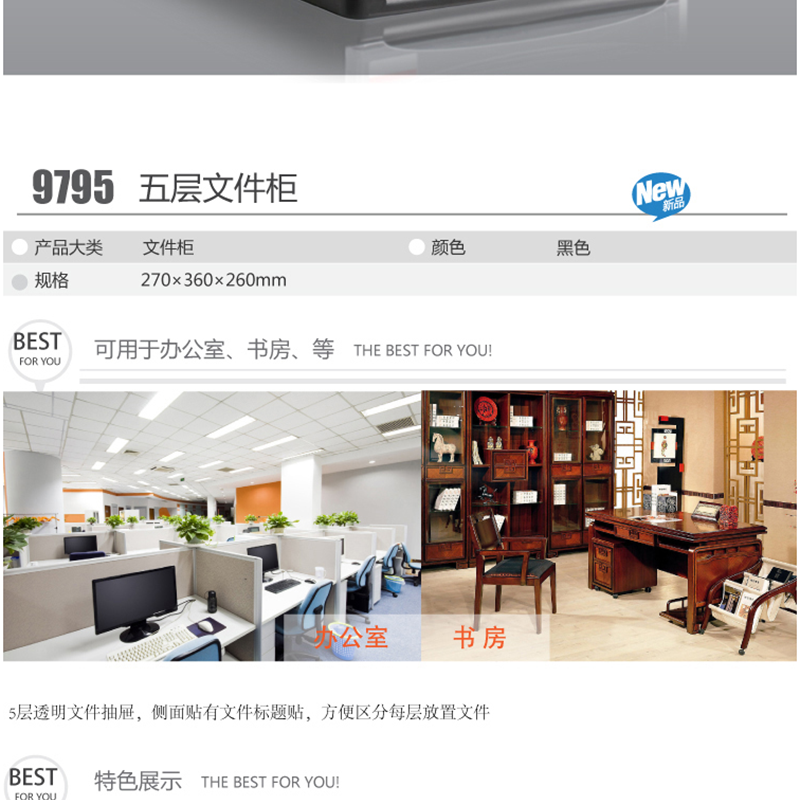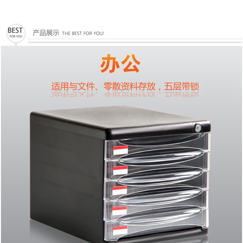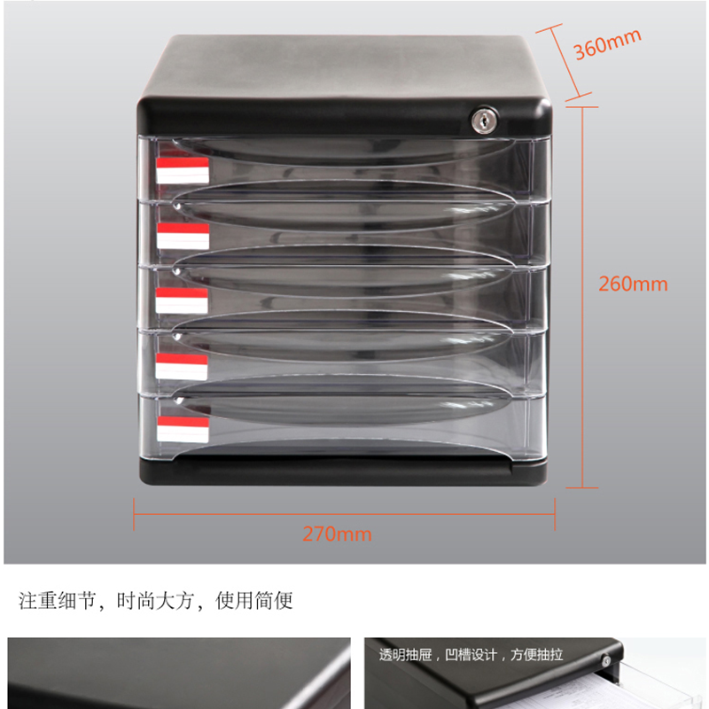 得力(deli) 9795 五層塑料文件柜(透明抽屜帶鎖)黑色