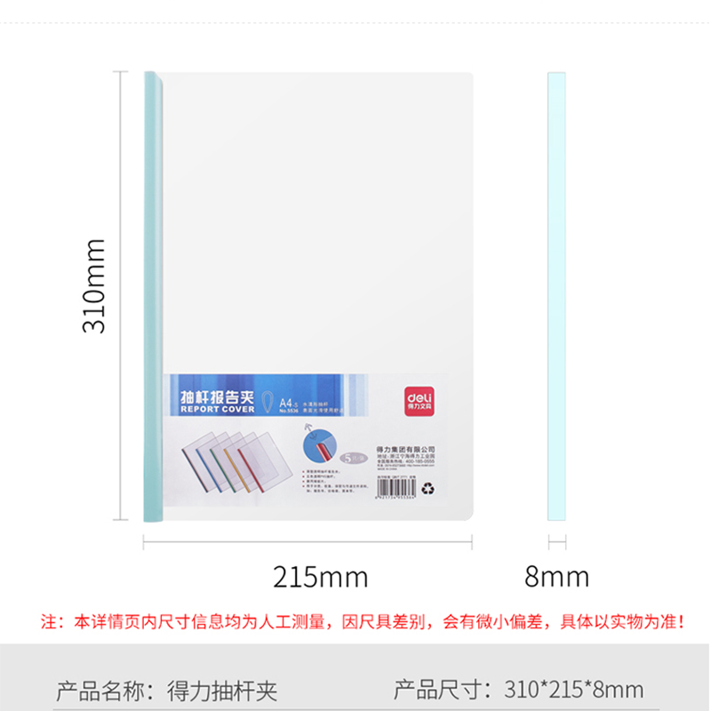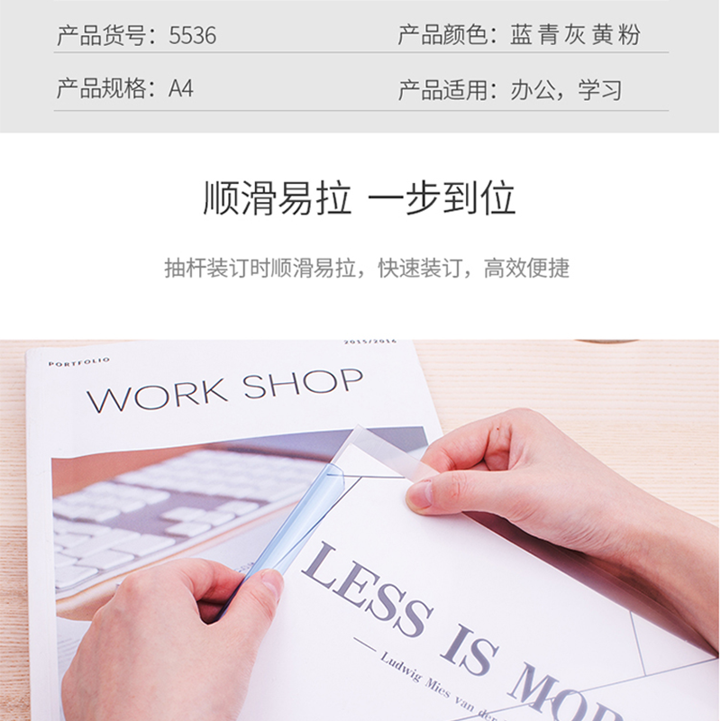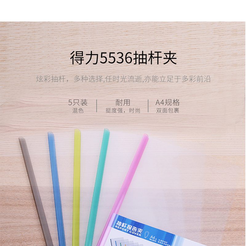得力(deli) 5536 A4透明抽桿文件夾報告夾5個/包 顏色隨機(jī)