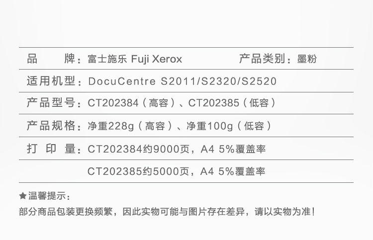 富士施樂(lè)(FujiXerox) CT202385 黑白復(fù)印機(jī)碳粉盒(黑色)