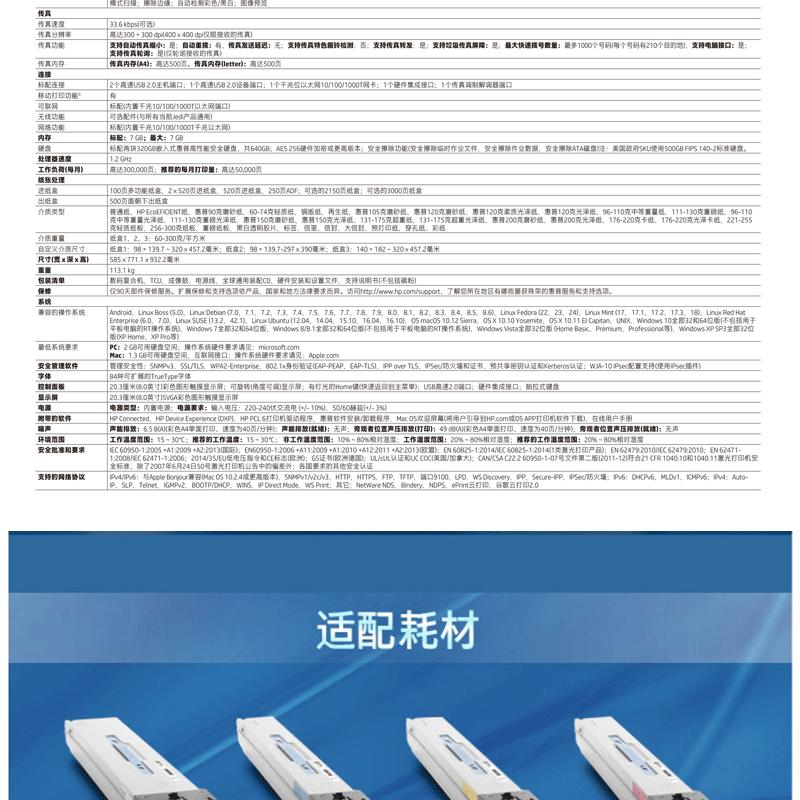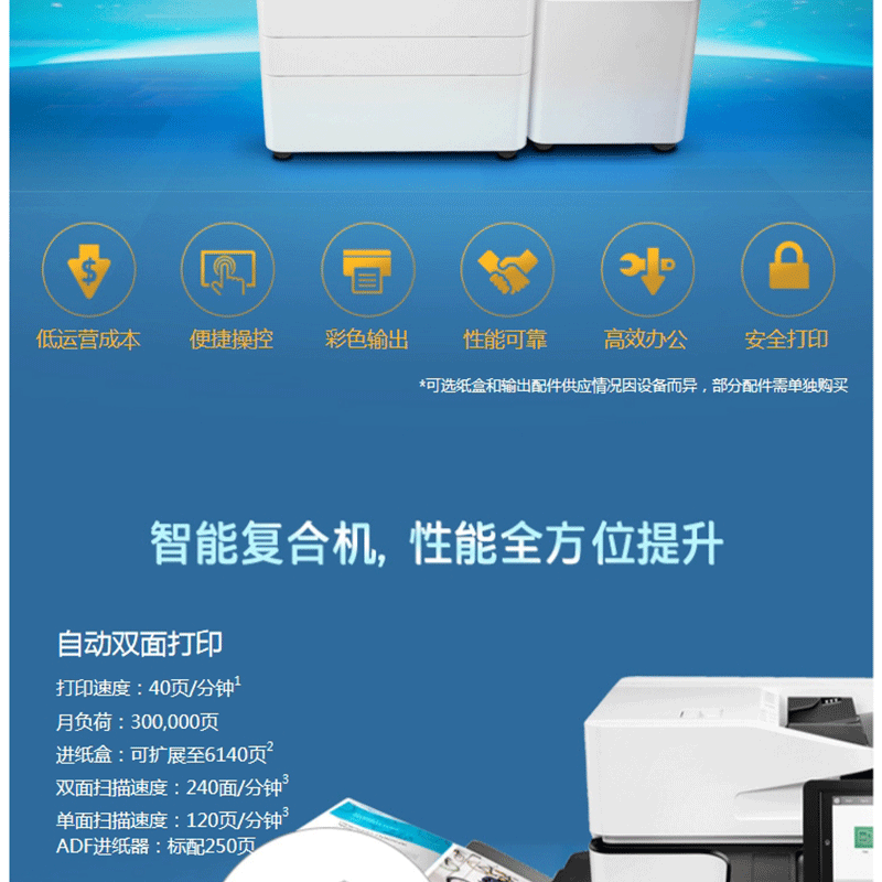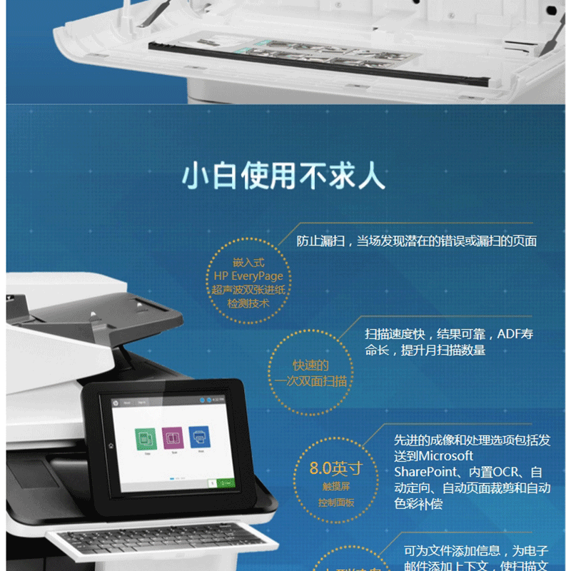 惠普新品!超低運營成本!黑彩同速:40頁/分鐘,ADF容量:250頁 ?