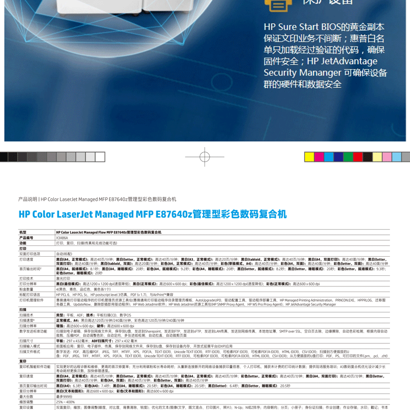 惠普(HP) LaserJet Managed Flow MFP E87640z A3幅面管理型數(shù)碼 彩色激光多功能一體機(打印/復(fù)印/掃描)