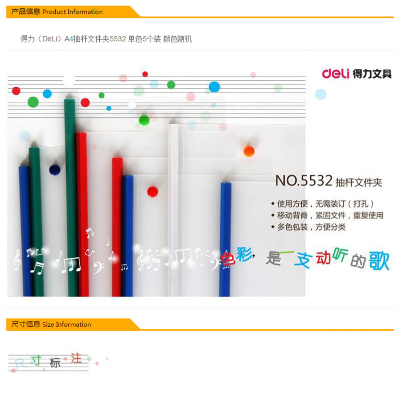 得力(deli) 5532 A4加寬抽桿文件夾報告夾5個/包 顏色隨機(jī)