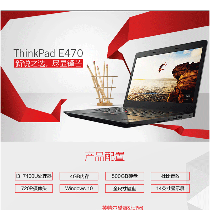 聯(lián)想(ThinkPad) E470 (20H1A01DCD)14英寸筆記本電腦(i3-7100U/4G/500G/集顯)