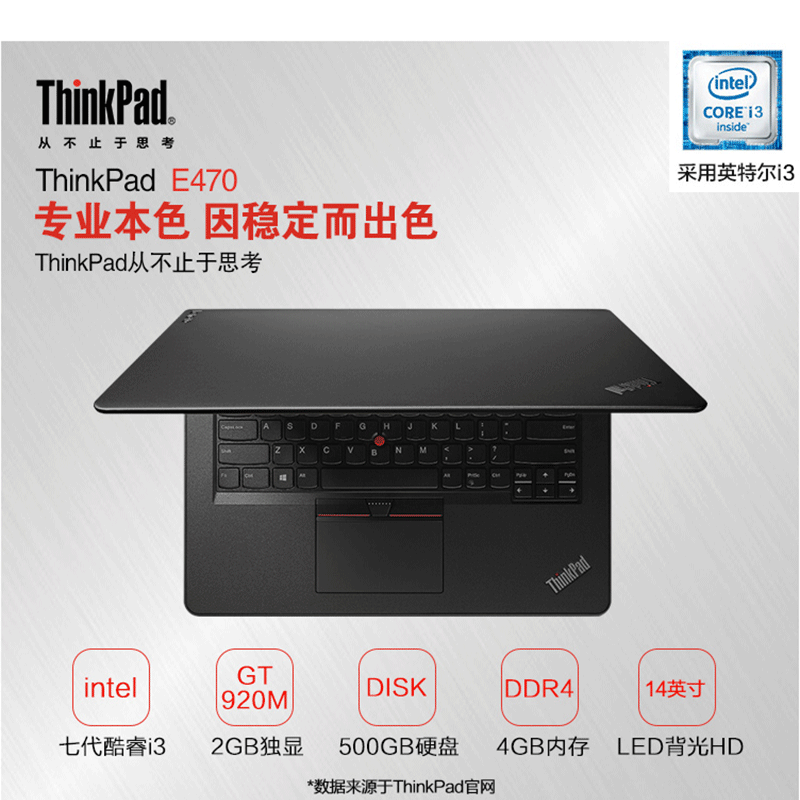 聯(lián)想(ThinkPad) E470 (20H1A01FCD)14英寸筆記本電腦(i3-7100U/4G/500G/2G獨(dú)顯)