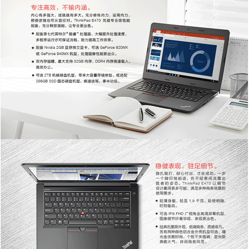 聯(lián)想(ThinkPad) E470 (20H1001TCD)14英寸筆記本電腦(i5-7200U/8G/256G SSD/2G獨顯)