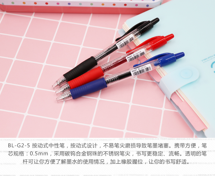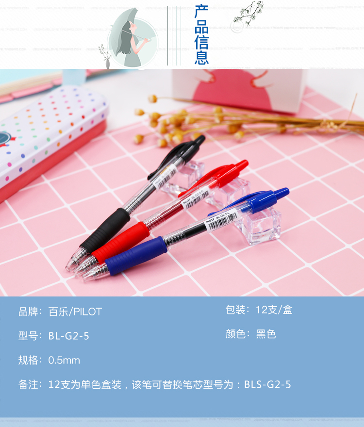 百樂(PILOT)BL-G2-5-B 按動中性筆啫喱筆 簽字筆0.5mm 12支/盒 (黑色)