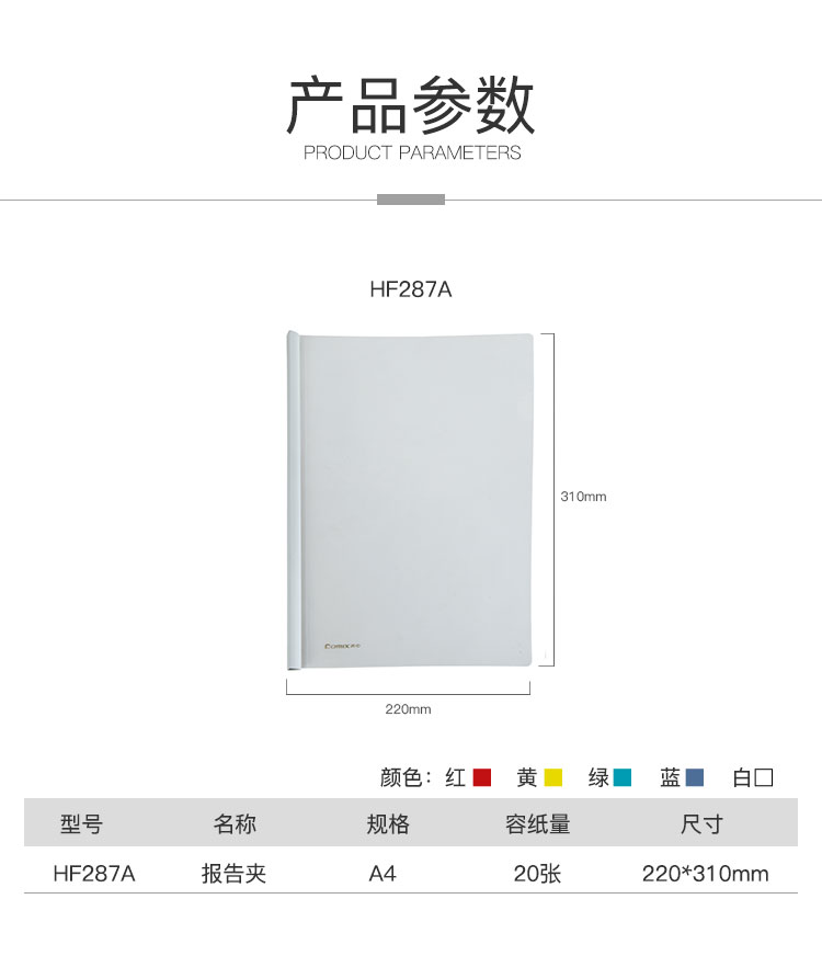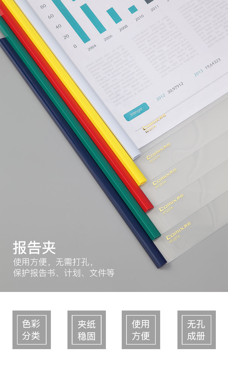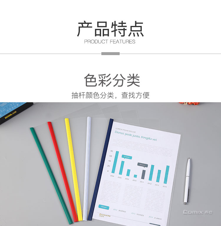 齊心(COMIX) HF287A A4抽桿夾/文件夾/報(bào)告夾/拉桿夾 彩色 5個(gè)/包