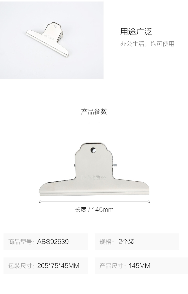 晨光(M&G) ABS92639 1#山形金屬不銹鋼票據(jù)夾145mm(ABS92639/2只袋 )