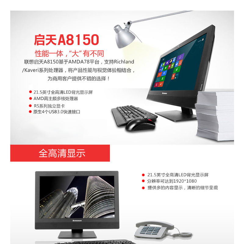 聯(lián)想(Lenovo) A8150 X4-855 商務(wù)辦公電腦一體機(jī) 21.5英寸 4G內(nèi)存 1T硬盤 2G顯卡