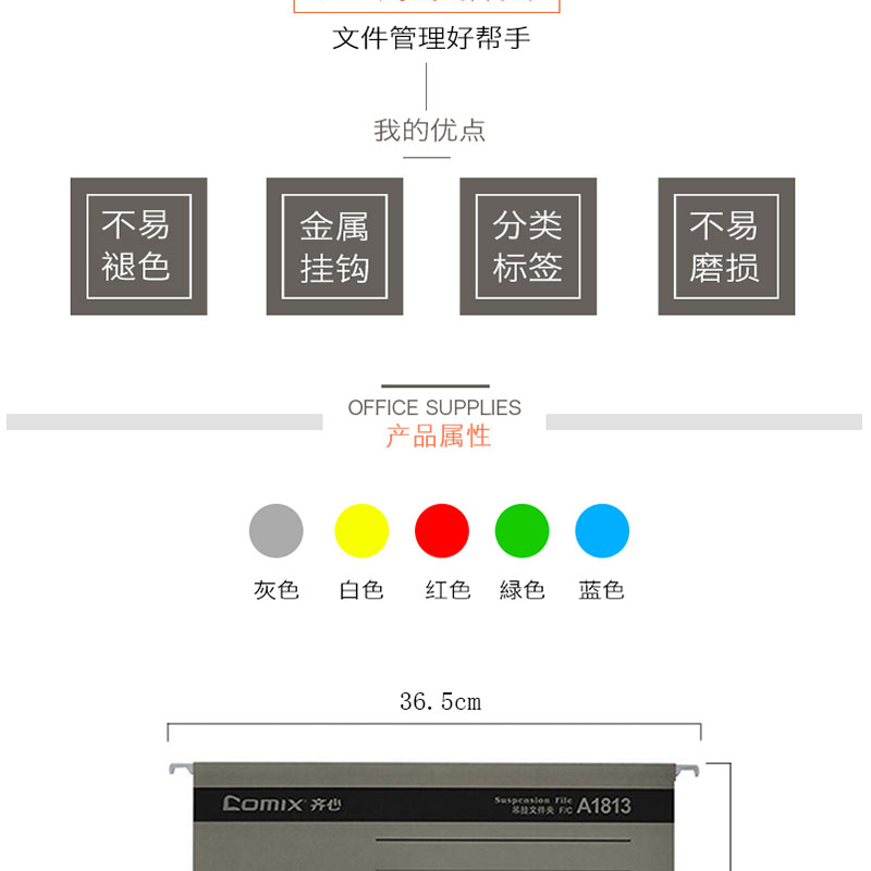 齊心(COMIX) A1813 易查找吊掛夾 F/C 紙質(zhì) 顏色隨機(jī) 25個/盒