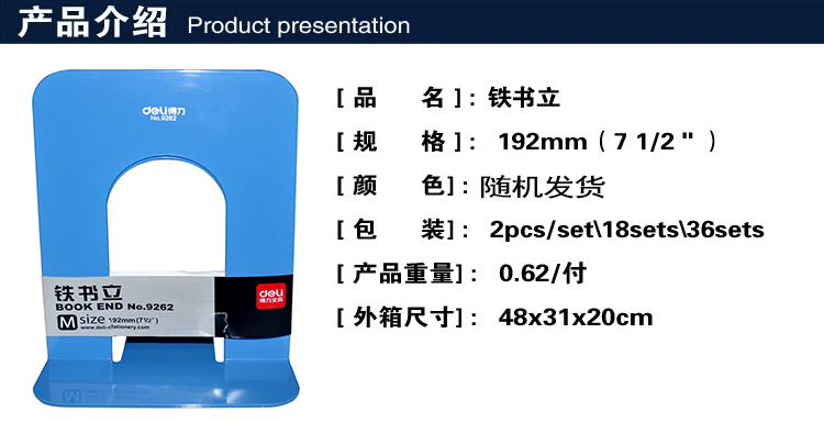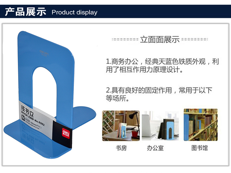 得力(deli) 9262 鐵書(shū)立(7.5寸/192mm)2片/付(藍(lán)色)