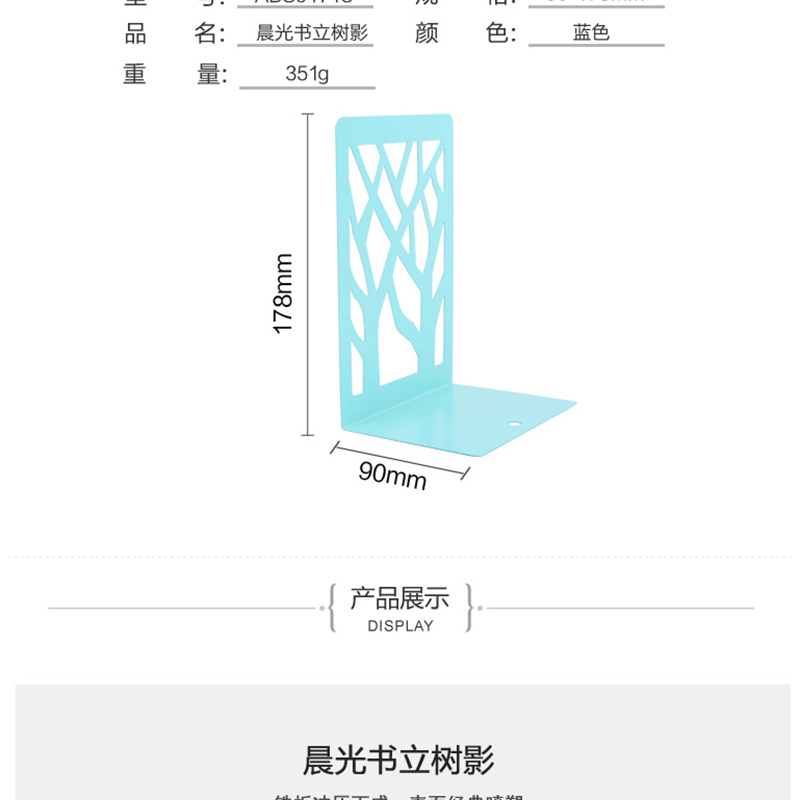 晨光(M&G) ABS91718 樹影金屬鐵書立2片/付 6.8英寸(藍色)