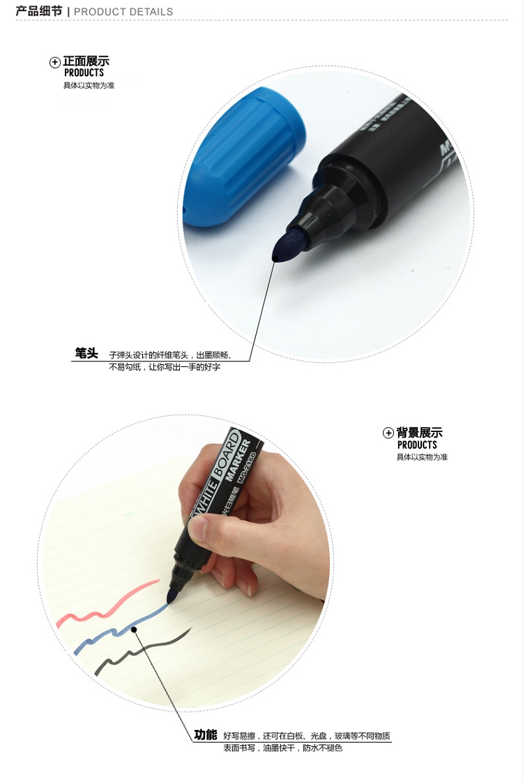 采用強(qiáng)韌筆尖,白板書寫 ,易擦除,不易干,筆蓋密封性好,防揮發(fā)。 ?