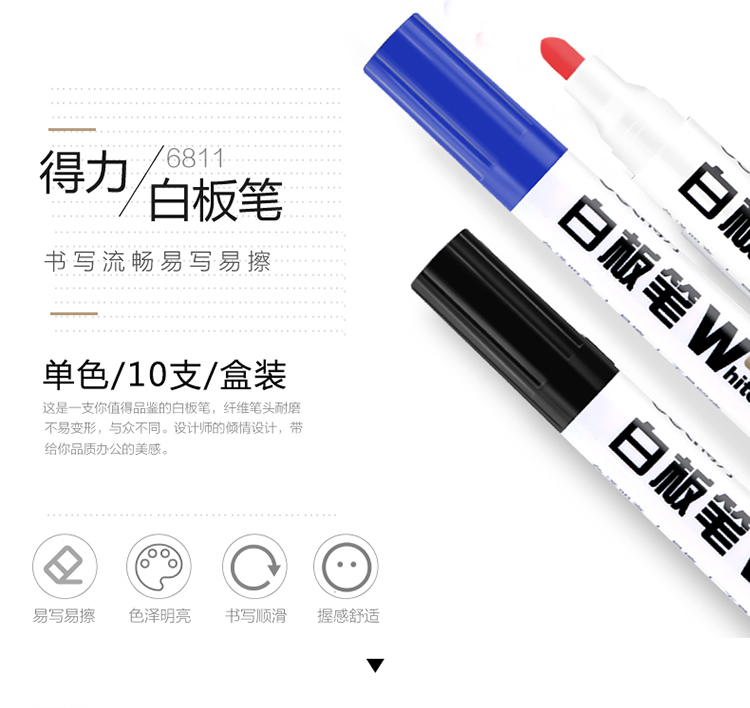 得力(deli) 6811 思達經典系列白板筆 10支裝(藍色)