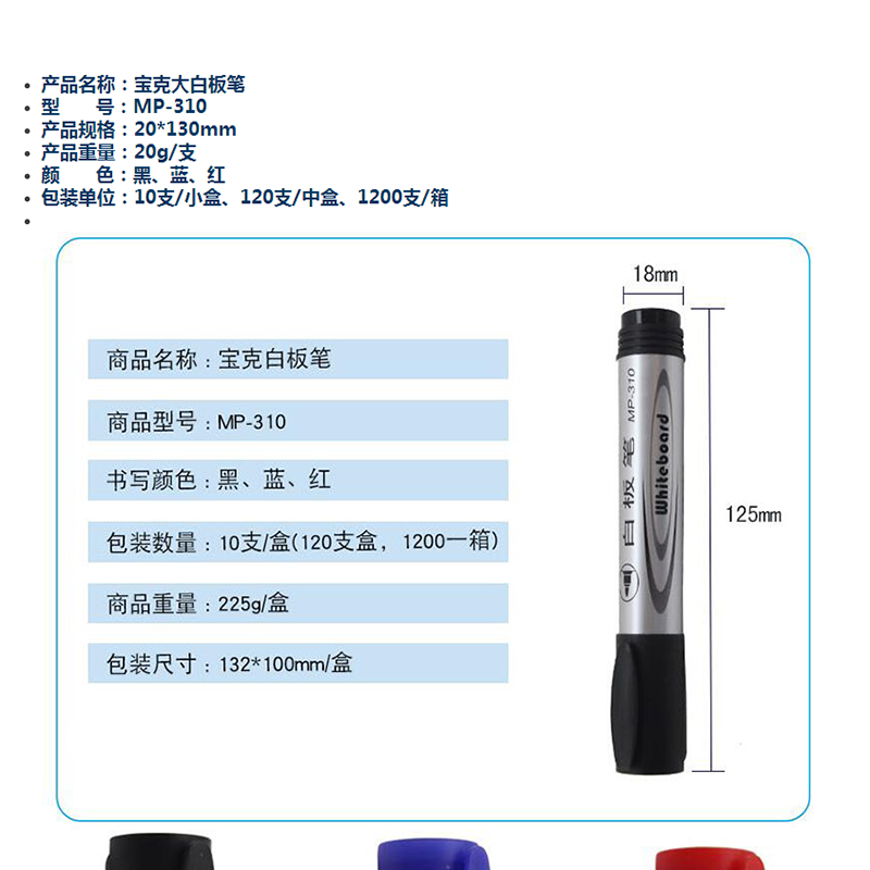 寶克(BAOKE) MP-310 大容量白板筆 10支/盒(紅色)