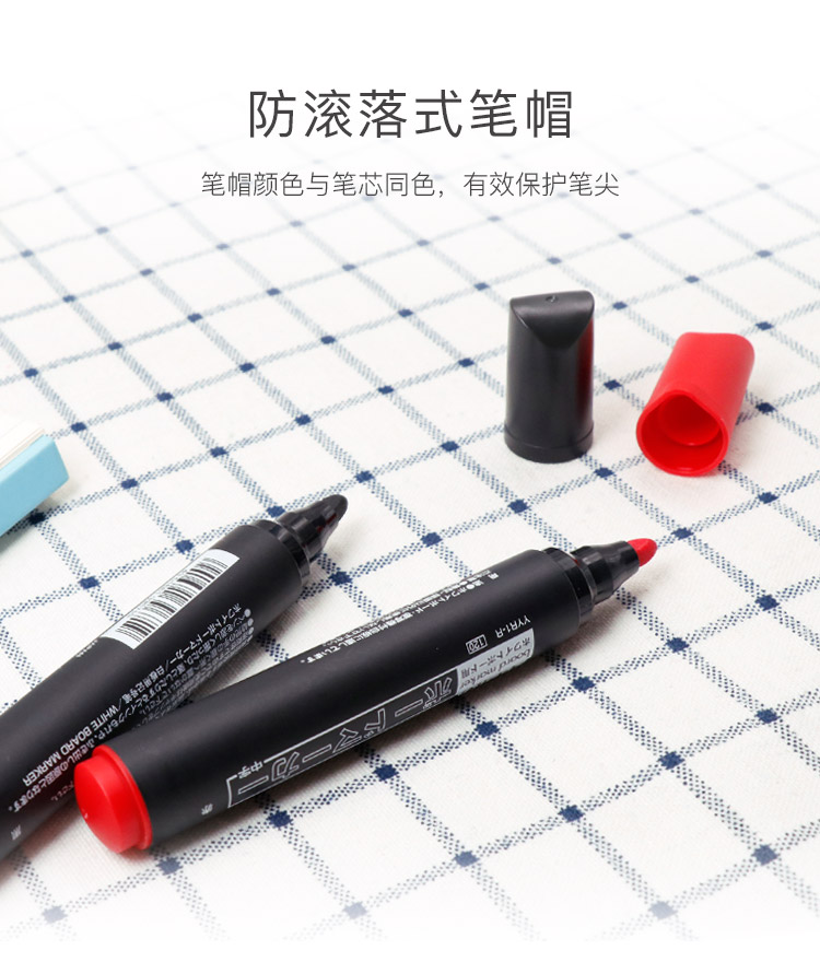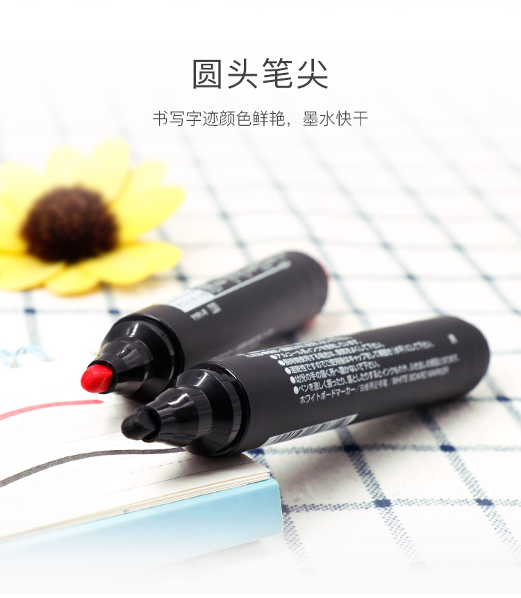 墨水屬速干性墨水、色深、鮮明,環(huán)保型,書寫輕松流暢,擦除簡單,一抹就干凈,是您辦公的好幫手,筆套有防滾動裝置。 ?