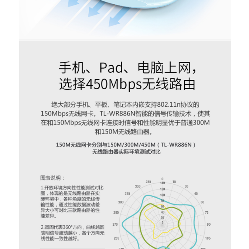 普聯(lián) TL-WR886N 450M無(wú)線路由器 智能路由 WIFI無(wú)線穿墻(水藍(lán)色)