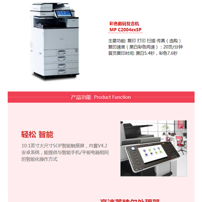理光(Ricoh) MP C2004exSP 彩色激光一體機(jī) A3多功能復(fù)合機(jī)(打印/復(fù)印/掃描) (四紙盒)