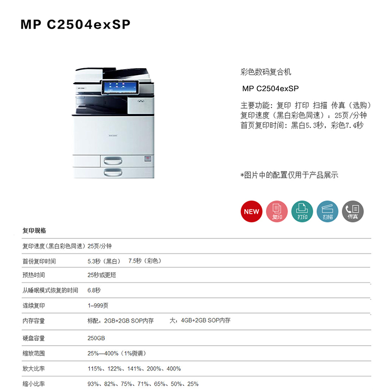 理光(Ricoh) MP C2504exSP 彩色激光一體機(jī) A3多功能復(fù)合機(jī)(打印/復(fù)印/掃描) (雙紙盒)