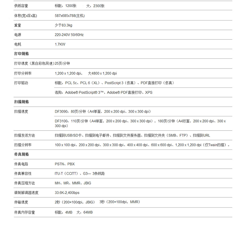 25頁/分鐘,標(biāo)配2GB內(nèi)存+2GB SOP系統(tǒng)內(nèi)存,250GB硬盤 ?