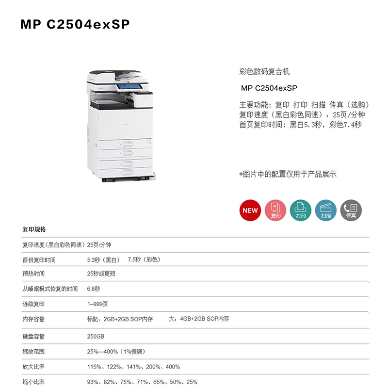 理光(Ricoh) MP C2504exSP 彩色激光一體機(jī) A3多功能復(fù)合機(jī)(打印/復(fù)印/掃描) (四紙盒)