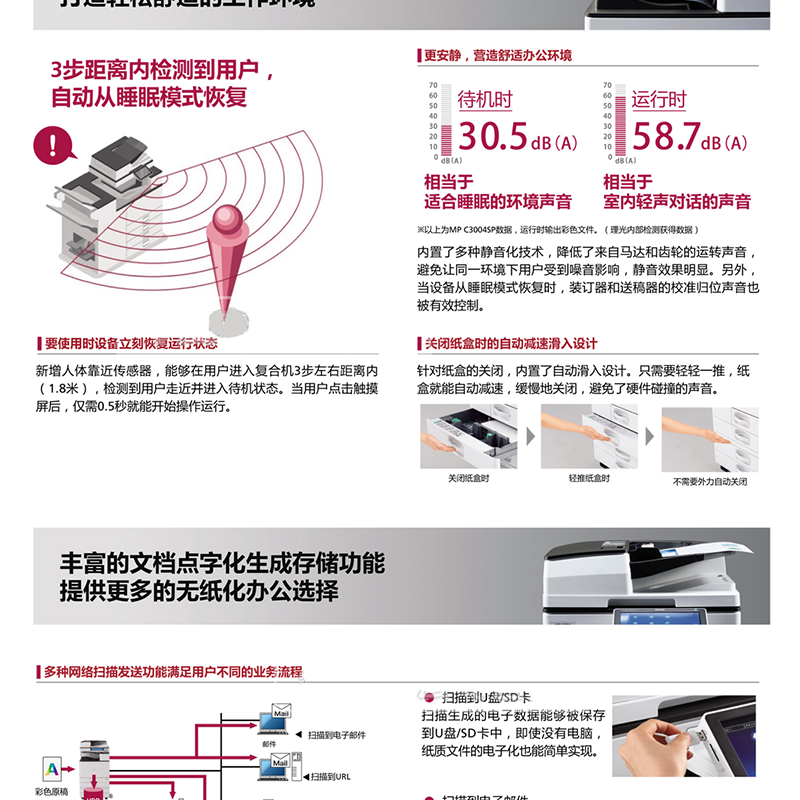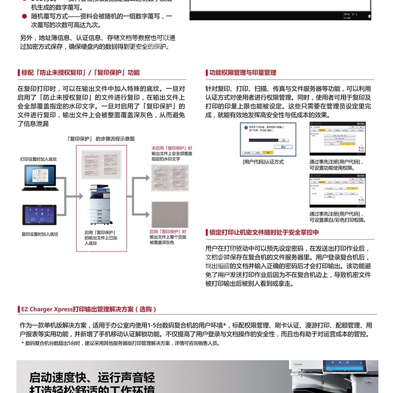 30頁/分鐘,標(biāo)配2GB內(nèi)存+2GB SOP系統(tǒng)內(nèi)存,250GB硬盤,預(yù)熱時間僅需要25秒 ?