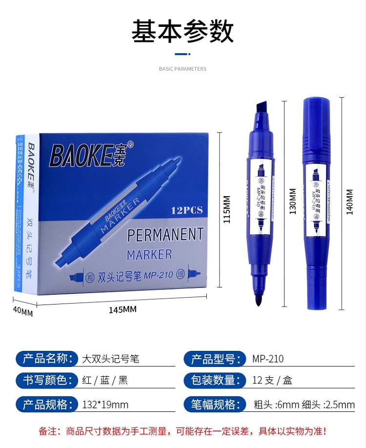寶克(BAOKE) MP-210 油性大雙頭記號筆 12支/盒(藍色)