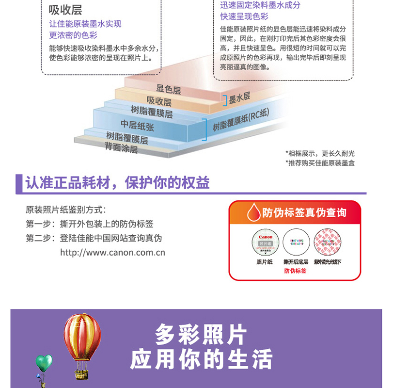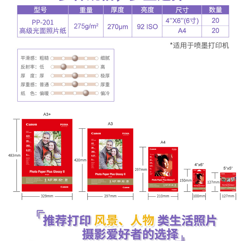 佳能(Canon) PP-201 高級(jí)光面照片紙 噴墨打印紙 (4*6/20張)