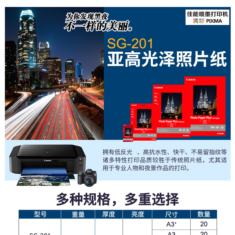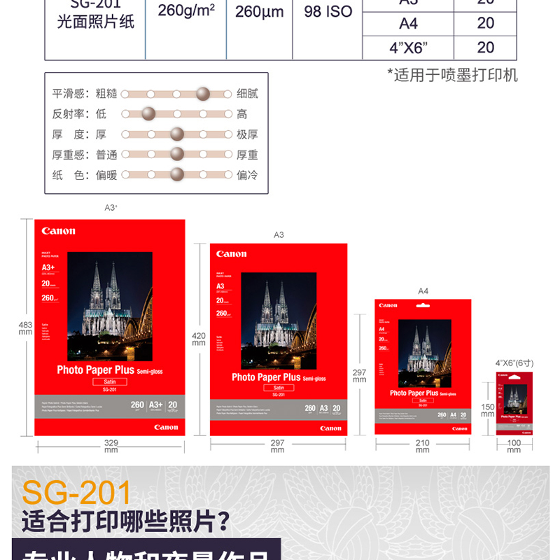 佳能(Canon) SG-201 亞高光澤照片紙 (A3/20張)